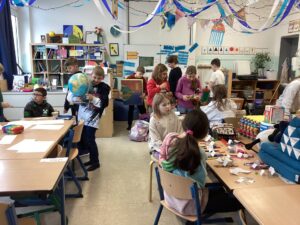 Um das Gelernte praktisch anzuwenden, haben wir anschließend selbst kleine Einkaufssituationen nachgespielt. Dabei haben wir in Rollen als Verkäuferinnen und Verkäufer sowie Kundinnen und Kunden verschiedene Dialoge geführt. So konnten wir realistische Gespräche üben und mehr Sicherheit im Sprechen gewinnen.