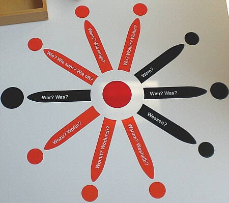 Auch die Sterntabelle zur Bestimmung von Satzgliedern setzen wir sowohl individuell in der Freiarbeit als auch gezielt im Bereich des Deutschunterrichts in der vierten Klasse ein.